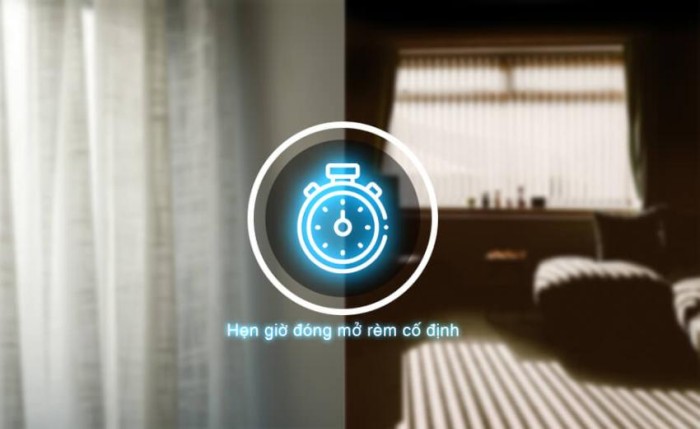 Chức năng này cho phép motor rèm nhận tín hiệu theo thời gian đã được lập trình sẵn, thực hiện các lệnh đóng, mở hoặc điều chỉnh độ cao rèm một cách tự động. Hệ thống tích hợp mạch điện tử với bộ nhớ lập lịch, đồng hồ thời gian thực và các rơ-le điều khiển motor, giúp duy trì độ chính xác cao trong từng thao tác. Tín hiệu từ bộ điều khiển RF, Wi-Fi hoặc ứng dụng di động được xử lý để kích hoạt motor, kiểm soát tốc độ và hành trình, đồng thời tránh va chạm hoặc quá tải, tối ưu hóa vận hành và bảo vệ độ bền cơ khí cũng như sợi vải.